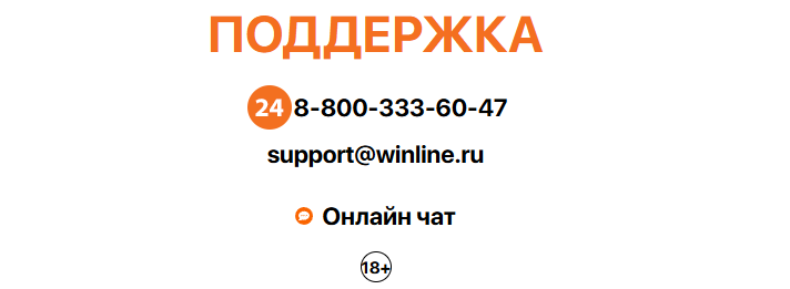 Поддержка пользователей работает круглые сутки, связаться с представителями Winline можно с помощью онлайн-чата и по телефону. Вопросы и пожелания всегда можно отправить на почту: support@winline.ru